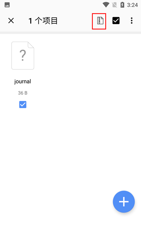 3、选择需要压缩的文件后,点击右上角的压缩图标;