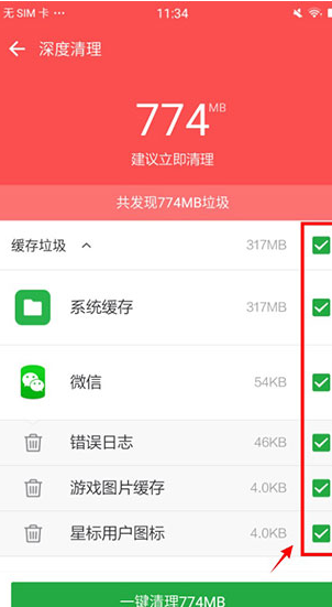 您好,进入手机清理页面后,扫描完成后,点击查看【手机垃圾详情】。检查完相关需要清洁的物品后,就可以继续清洁了。感谢您对豌豆荚的支持!