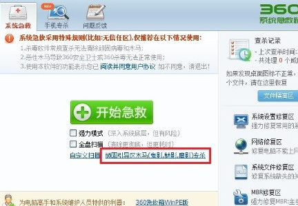 独特专业定制的360救援盘系统,即使系统中毒、崩溃也能轻松应对。