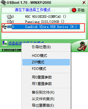 3.ZIP模式,模拟ZIP盘进行格式化。