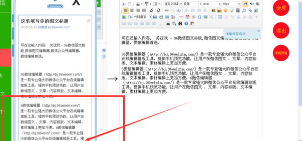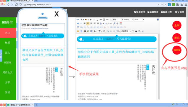 为了更好的用户体验和更好的编辑预览功能,96微信编辑器更新了手机预览功能,