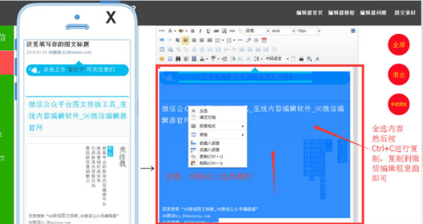 或者按Ctrl+C复制,打开微信公众平台-素材编辑,按Ctrl+V粘贴。