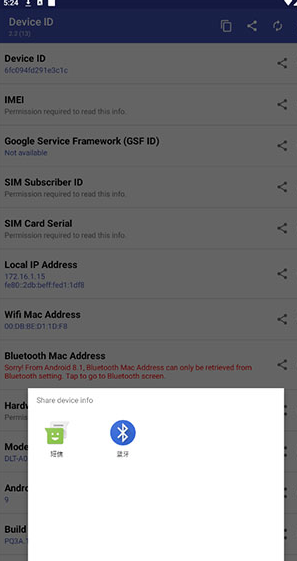 mac地址:硬件标识符,包括WiFi mac地址和蓝牙mac地址。自Android 6.0起已被禁止,一旦获得将被视为有害应用程序。