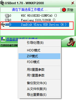 3.ZIP模式,模拟ZIP盘进行格式化。
