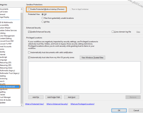 保护模式(沙盒)是一项核心架构更改,涵盖了Acrobat 中的所有功能和工作流程。保护模式默认关闭。