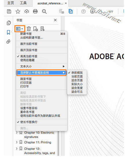 Acrobat 现在在书签属性中提供了一个新选项,允许您在调整多个书签的缩放级别时保留目标页码。