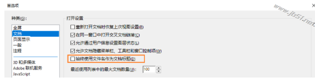 有一个新的文档首选项,允许您使用文件名作为文档标题。默认情况下,此首选项处于禁用状态。要启用此首选项,请转至Acrobat 首选项并单击左侧窗格中的文档。在打开设置下,选中始终使用文件名作为文档标题。