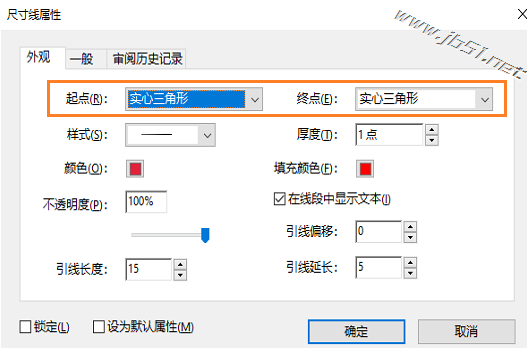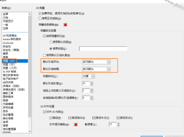 Acrobat 现在保留您在“尺寸线属性”对话框中设置的“默认引线起点”和“默认引线终点”属性。