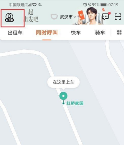 1.打开滴滴出行APP,点击右上角个人中心。