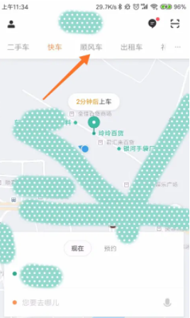 2.进入滴滴出行主页后,出现地图缩略图。我们可以点击上面的“Hitch”图标,如下图所示。