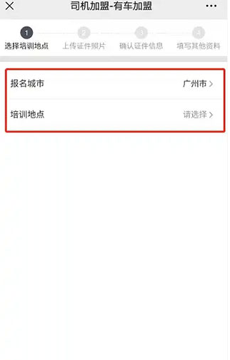 4、登录成功后,即可进入信息填写界面,根据系统提示选择对应的培训地点,然后点击下一步;