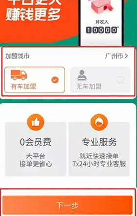 2、服务结束后进入主页后,点击司机加入。进入加入界面后,系统会自动定位城市。如果定位不准确,可以自行选择。完成定位后,点击“成为卡车司机”;