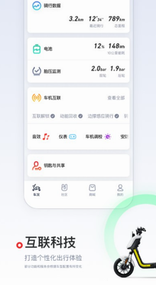 2、用户根据这款应用能够查看自已的小牛电动车现阶段的运行情况、用电量剩下情况等信息;